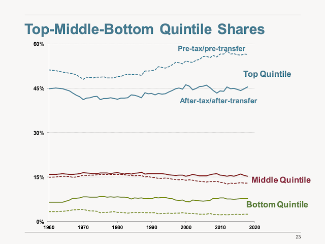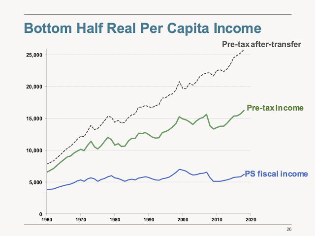 Real income, including everything that Piketty and Saez missed, is increasing. Actual income, including transfer payments, has greatly increased.