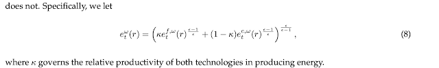 The first core assumption is the elasticity of substitution between carbon emissions and clean energy, which is set at 1.6 here. This is very flexible, but not unlimited.