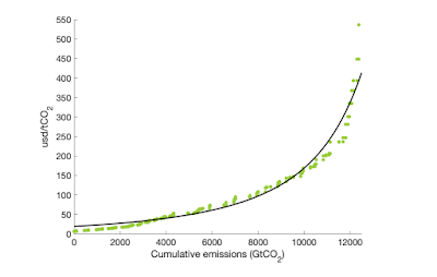 Unlike many black box climate models, the intuition here is straightforward and convincing, “Why didn’t I think of it?” Somehow. We are sitting on a pile of fossil fuels, and the cost of consumption is getting higher and higher.