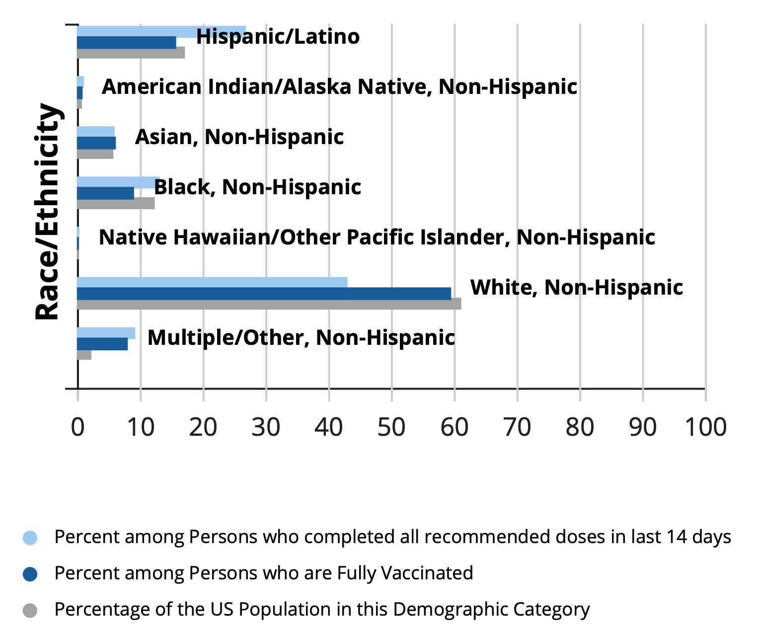 This is an interesting narrative, and the denials are all caveman Republican anti-vaccine advocates influenced by lunatics spreading “misinformation” on the remaining uncensored parts of the Internet. This is not the whole story or even the main story. Other countries have also reached about 70%.Here, straight From the CDC, Look at the racial breakdown.